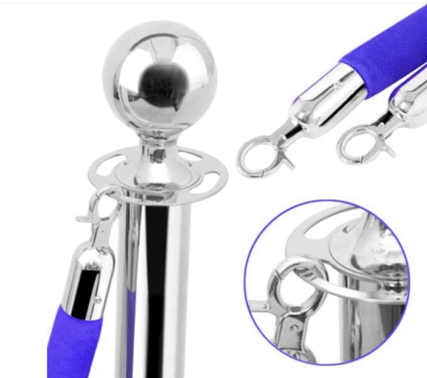 Set of 2 Silver Finish Q Manager with Blue Velvet Rope for Ensuring Social Distancing, Queue Manager with 1.5m Rope